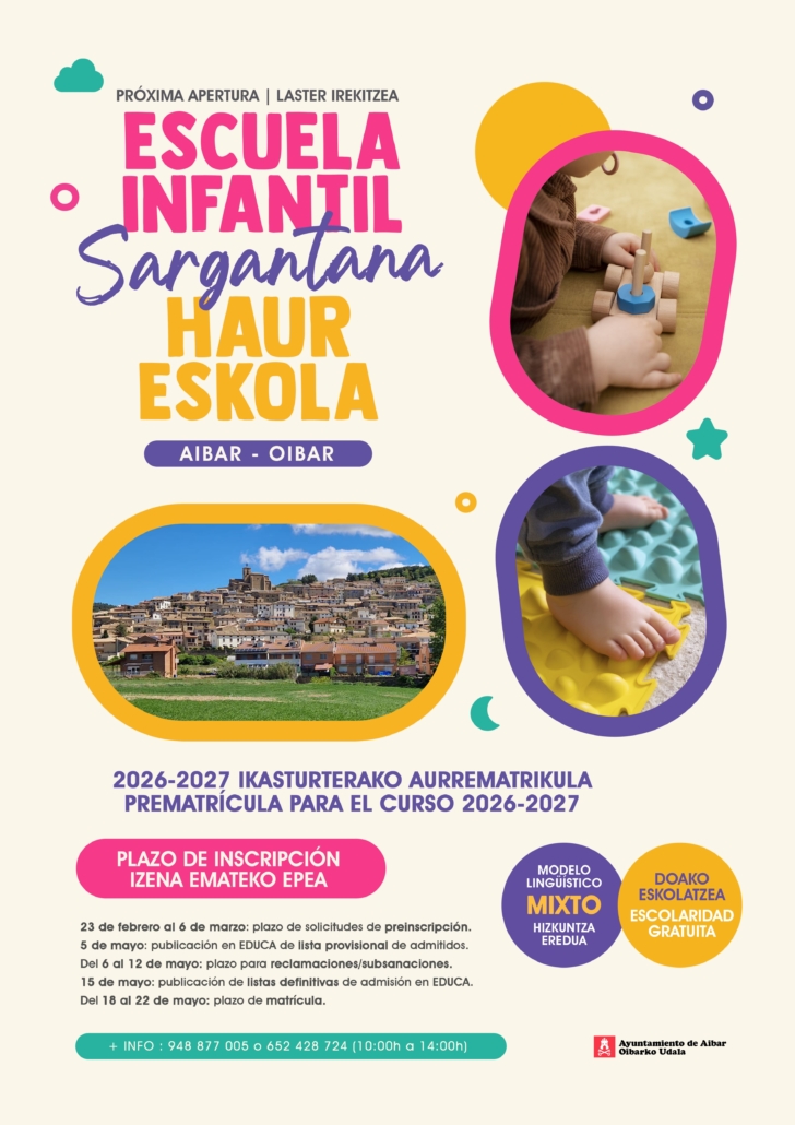 La nueva Escuela Infantil Sargantana de Aibar / Oibar ya es una realidad y abrirá sus puertas este próximo curso 2026/2027.